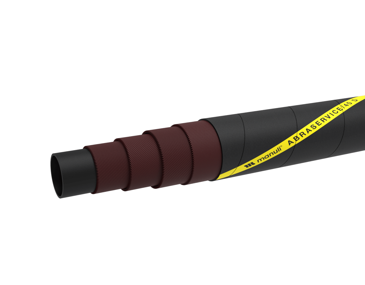 Delivery hose for mortar, gypsum, grout spraying at open air, indoor or underground construction sites, etc.