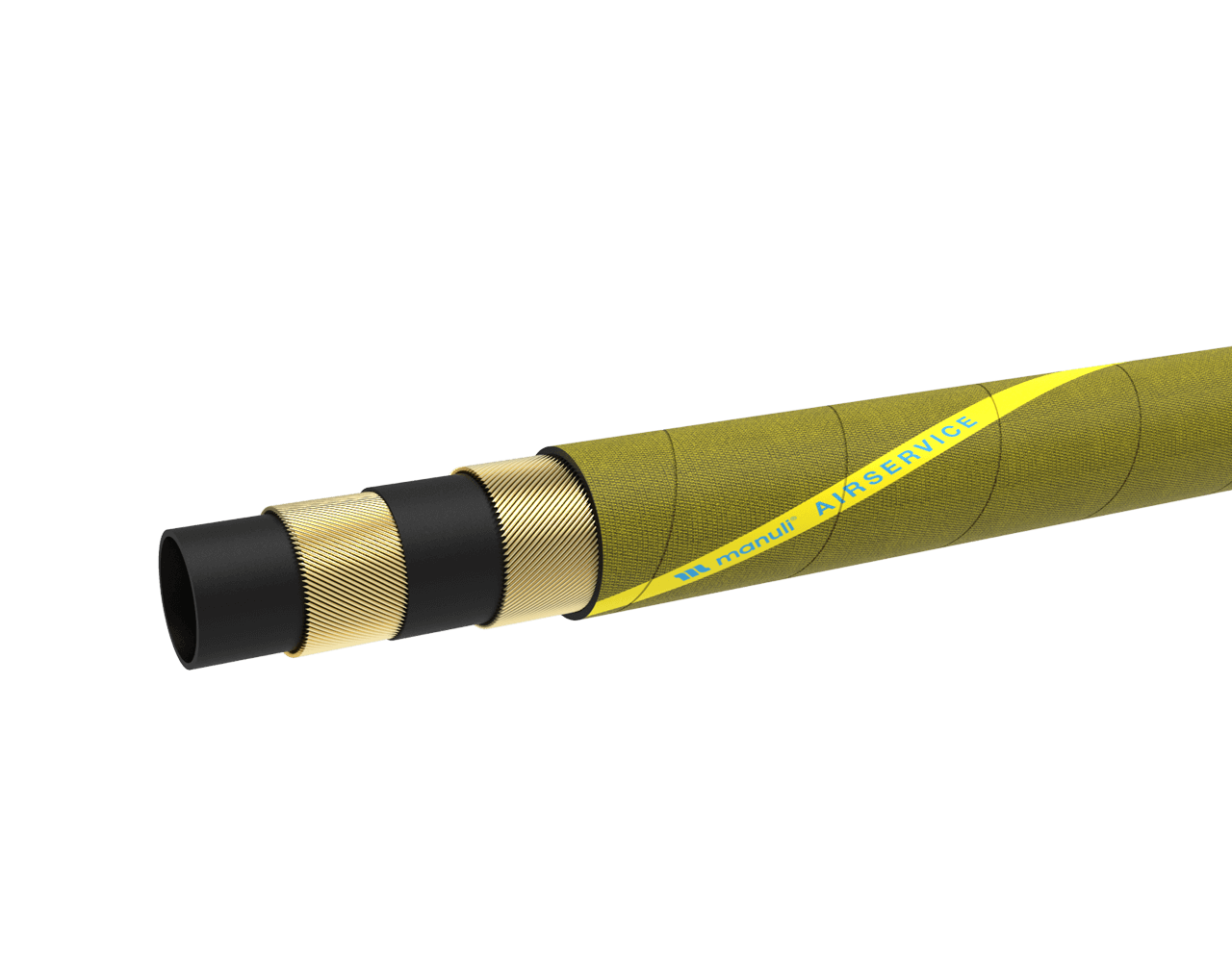 Heavy duty air compressor hose, for use with high-pressure compressed air with oil traces used in mining, construction, etc. Typically used in compressed air systems and power transmission.
